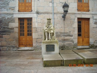 Para variar o mau tempo continuava, mas com menos frio e com chuva mais pausada. Excelentes trilhos de bosque com a travessia de algumas linhas de água. Parámos em Portomarin para comer um excelente bocadillo de tortilha que tinha sobrado do jantar do Alexandre. Bons momentos fotográficos: rio Minho e respectiva ponte, escadaria e arco da entrada de Portomarin e a Igreja - Fortaleza de San Nicolás, de estilo românico e um dos edifícios religiosos mais importantes do Caminho de Santiago, a sua construção data dos sécs. XII-XIII. Em Castromaior o Castro posou para a fotografia no café “O Castro”! Parece um trocadilho, mas é verdade! Às 15h00 e após termos percorrido 31,5 km chegámos a Vendas de Narón. Tinha mais do que um albergue pelo que optámos pelo “Cruceiro” por 10 euros, que servia refeições num bar dos mesmos proprietários. Deu para ver que não havia muita gente ali a dormir, pelo que iríamos estar tranquilos. Com o tempo como estava iria ser um problema para enxugar roupa, mas tínhamos que lavar, em ultimo caso, colocava-se dentro dum saco na mochila e enxugava-se no dia seguinte. Como dispúnhamos de algum tempo livre, durante a tarde fomos até ao bar do albergue beber e comer algo e eu aproveitei para por as noticiais em dia (pelo menos as espanholas…) lendo um periódico local. Na final da etapa de hoje o Alexandre acabou por chegar comigo e com o Delfino, tinha ficado para trás, deixando seguir o Pimpão, o Castro e o Luís, pois queria telefonar para o Brasil.